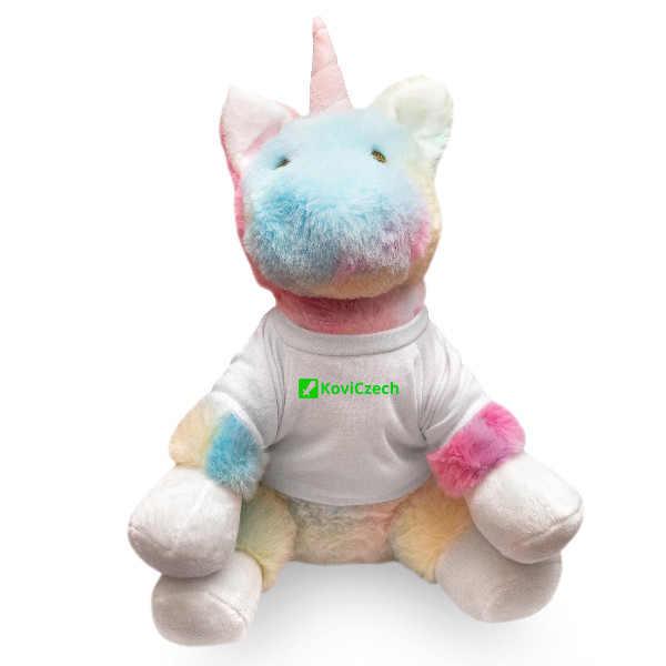Jednorožec z heboučkého a měkkého plyše v bílém tričku určeném pro sublimační potisk. Hračku je možné zakoupit i bez potisku. Výška hračky vsedě je 25 cm. Je vhodná jako vtipný nebo romantický dárek k Valentýnu, narozeninám či k Vánocům, pro partnera, nebo děti.