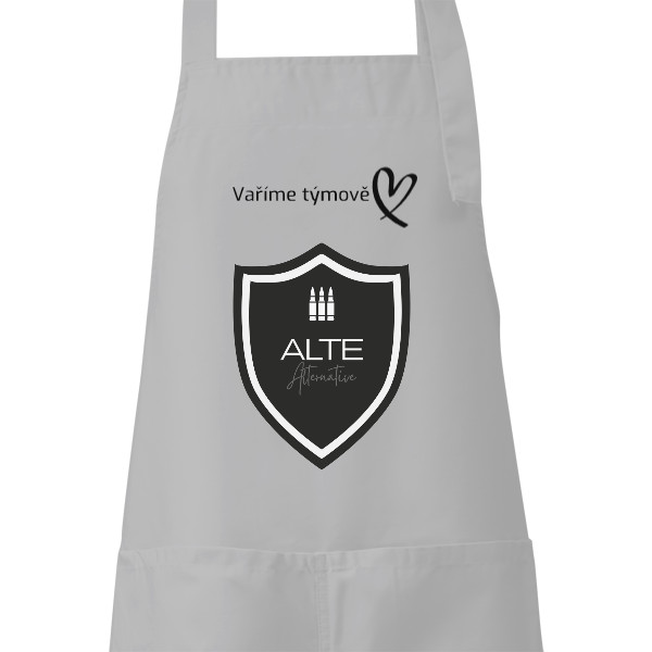 Dlouhá zástěra z kvalitního pevného materiálu. V přední části je velká dvoudílná kapsa na odložení nezbytností, která se určitě při vaření hodí. Za krkem je nastavitelný popruh se sponou a vzadu zavazování.